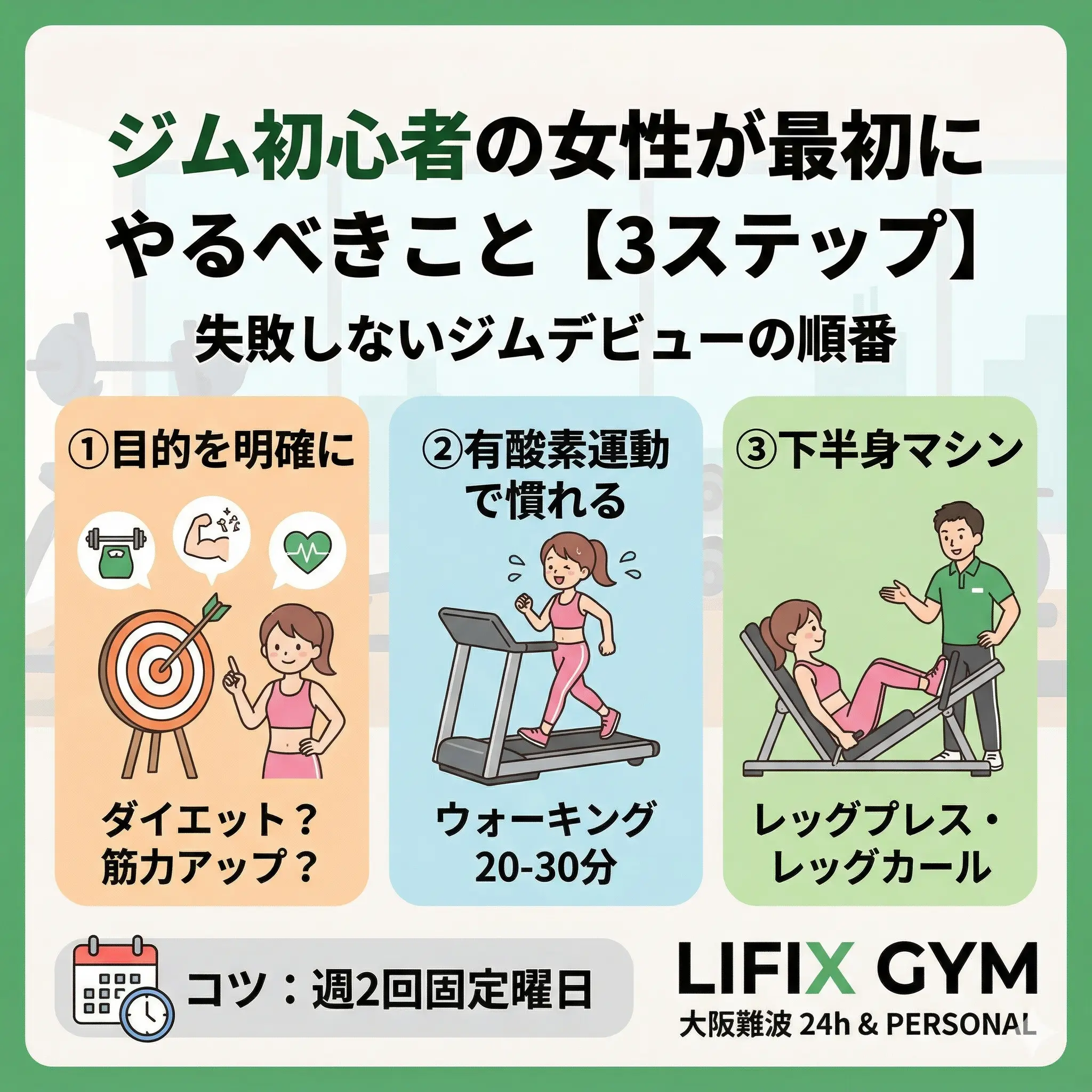大阪難波に位置するLIFIXジムは50種類以上の最新器具と関西で数少ない低酸素ルームを完備し、洗練されたライティングとゆったりとした空間設計で快適なトレーニング環境を提供します。