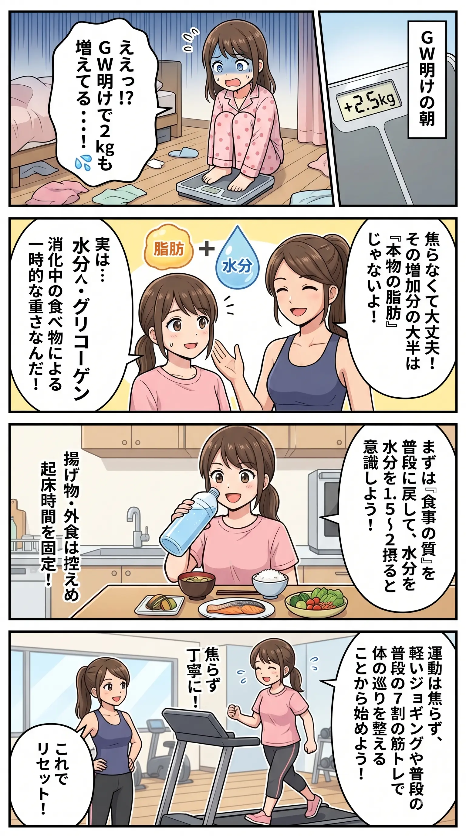GW明けの体重増加には「仕組み」があって、正しく対処すれば1〜2週間でリセットできます。